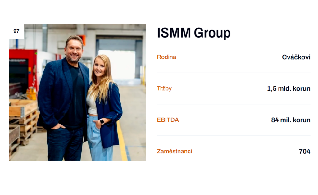 Die ISMM Group bestätigt ihre stabile Position auf dem tschechischen Markt. Im Jahr 2026 wurde sie bereits zum dritten Mal in das renommierte Ranking der größten Familienunternehmen aufgenommen, das jährlich vom Magazin Forbes erstellt wird.